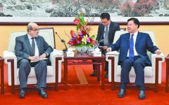 常正樂 攝 中國石油網消息 10月19日,集團公司董事長王宜林會見了來訪的伊拉克石油部常務副部長法亞德一行,雙方就油氣領域合作深入交換了意見。集團公司副總經理侯啟軍參加會見。